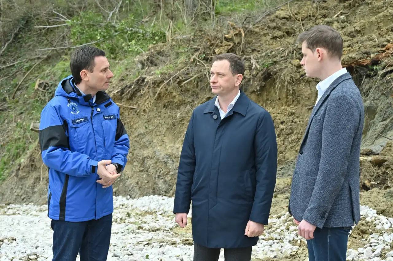 В ходе рабочего объезда Хостинского района лично проверил ход восстановления магистрального водовода на Новороссийском шоссе. Это жизненно важная артерия для более чем 20 тысяч жителей и гостей микрорайонов Бытха, Хоста и Кудепста. Повреждение трубопровода произошло из-за оползневых процессов, вызванных обильными осадками и переувлажнением почвы.