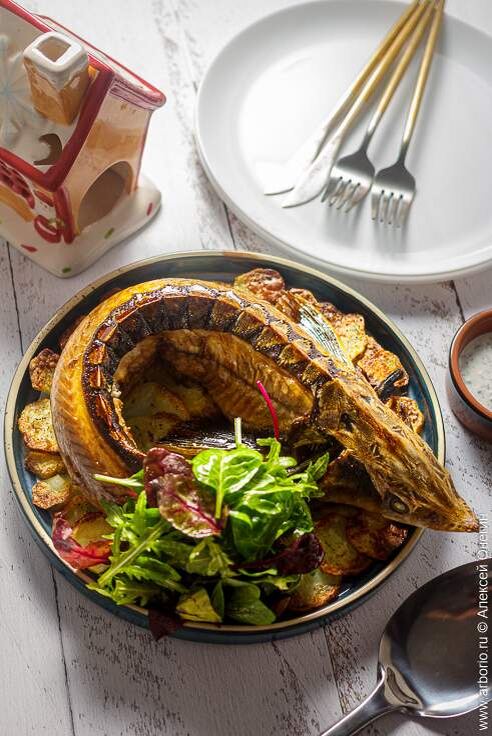 Сложность этого блюда больше касается подачи: активные кулинары без труда справятся с приготовлением стерляди в духовке, но чтобы добиться идеального внешнего вида, потребуется немного усилий. Однако, даже если мелкая моторика подводит, насыщенное послевкусие этой рыбы не оставит никого равнодушным.