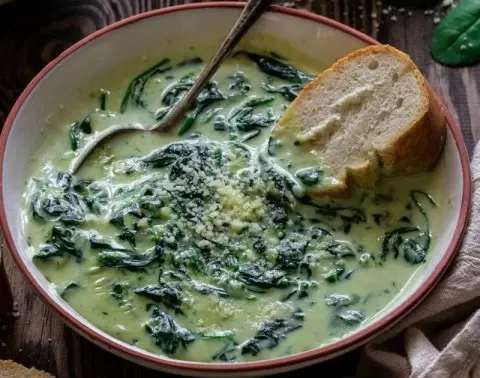 - Кремовый суп из шпината с картофелем и чесноком: