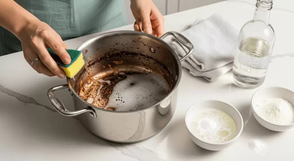 Шаги по очистке кастрюли с пригаром