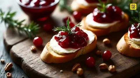 Эта закуска сочетает в себе нежный сыр бри с кисловатой клюквой, создавая уникальный дуэт вкусов. В дополнение как нельзя кстати подойдет хрустящий багет.