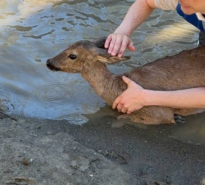Испуганное животное не могло выбраться из воды. На помощь бедняге пришли неравнодушные сочинцы — они поймали олененка, вытащили из реки и отпустили в лес.