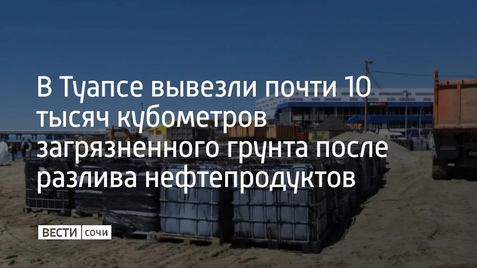 Работы по ликвидации разлива нефтепродуктов в Туапсе продолжаются в круглосуточном режиме. Всего собрано и вывезено 9,7 тысячи кубометров загрязненного грунта и водомазутной смеси, из них 2,5 тысячи кубометров – за последние сутки.
